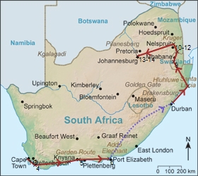 Visited areas: Cape Town JohannesburgKruger
